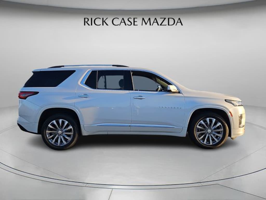 18/27 City/Highway MPG New Price! Rick Case Certified, 10 year 100k Powertrain Warranty - Rick Case Exclusive with Nationwide Coverage, CARFAX 1-Owner, CLEAN CARFAX, Blind Spot Monitor, Lane Keep Assist, Lane Departure Warning, Panoramic Sunroof, Power Liftgate, Power Seat, Heated Seats, Important Price Information: To receive this special sales price on this vehicle, you must present a printed copy of this page at the time of purchase., Heated 2nd Row Outboard Position Seats, Heated Driver & Front Passenger Seats, Heavy-Duty Cooling System, Hitch Guidance w/Hitch View, Preferred Equipment Group 1LZ, Trailering Assist Guidelines, Trailering Equipment, Ventilated Driver & Front Passenger Seats. Iridescent Pearl Tricoat 2023 Chevrolet Traverse Premier FWD 9-Speed Automatic 3.6L V6 SIDI VVT CARFAX One-Owner.